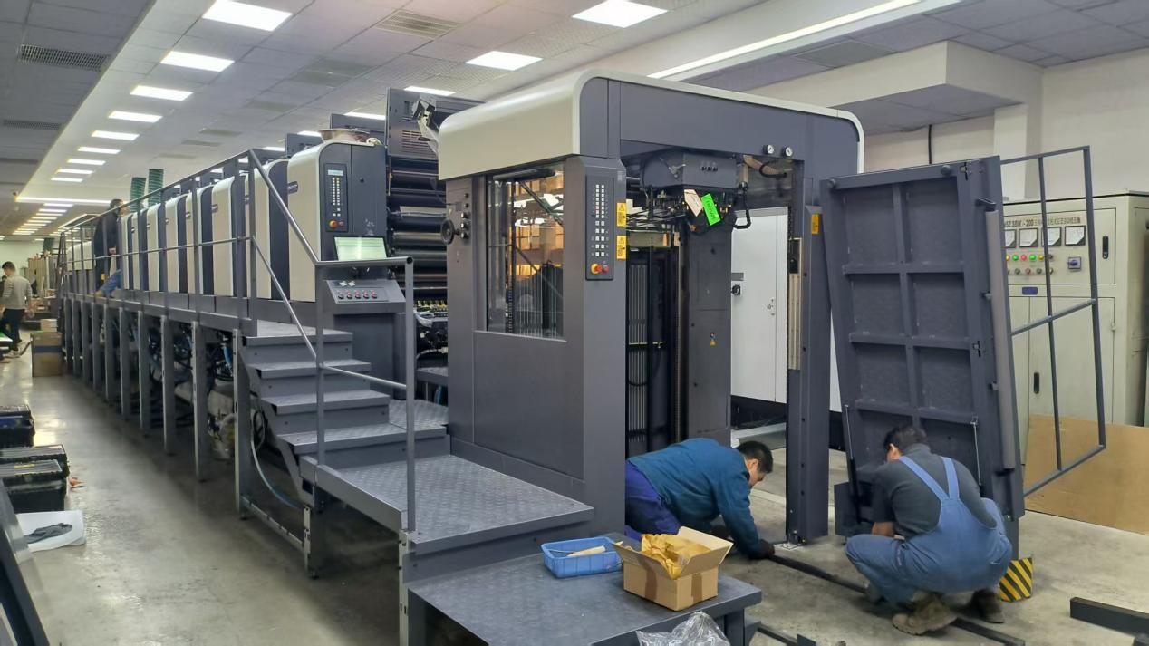 对印刷企业而言,设备投产时效直接关联订单交付与市场先机。为让博杰包装尽早手握高端生产“利器”,曼罗兰工程师团队放弃元旦休假,全力投入紧张的装机调试工作。从部件的精准对位、系统参数的反复校准,到印刷压力的精细微调、上光工艺的完美匹配,工程师们昼夜鏖战,严谨攻克每一个技术节点。